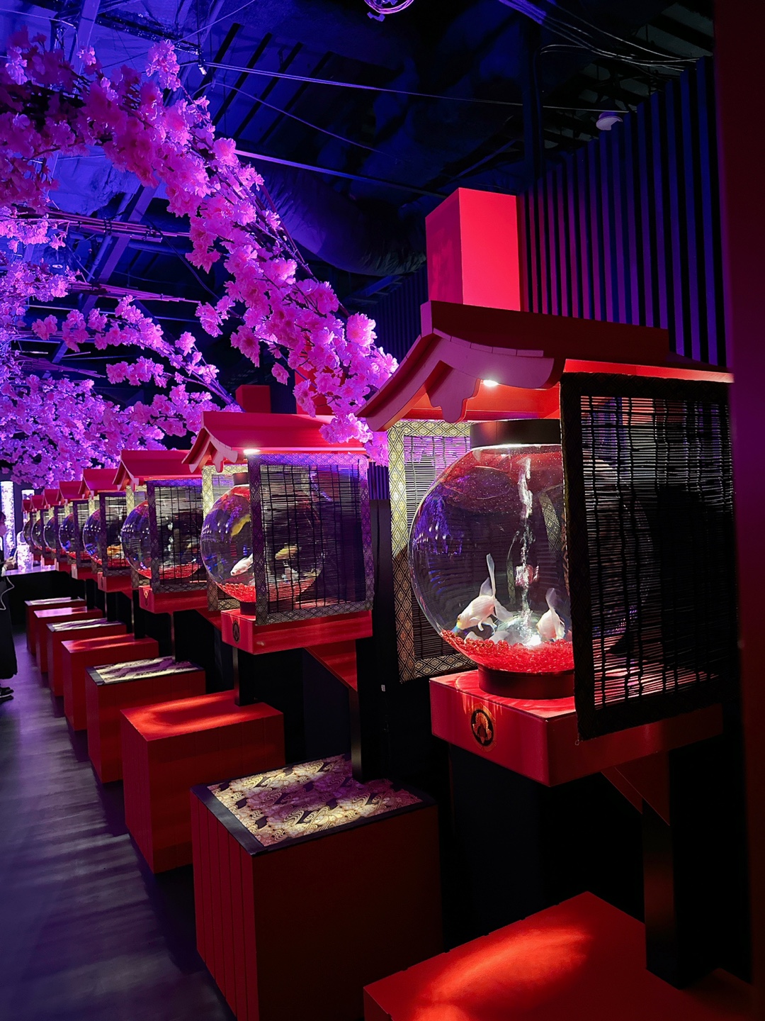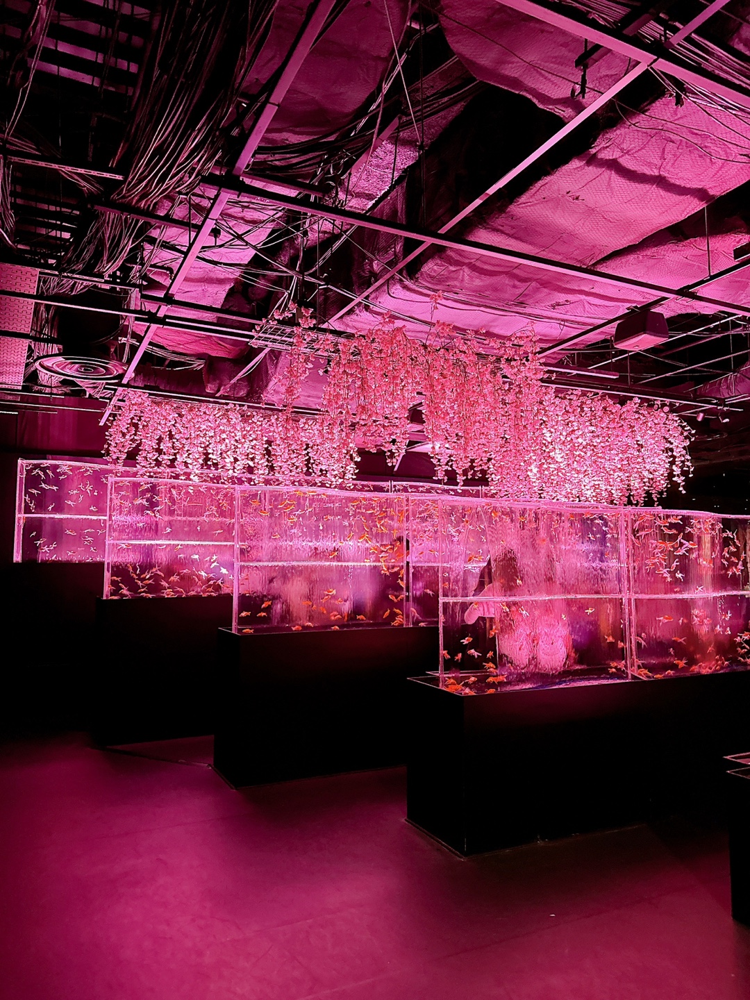 금붕어와 사쿠라 및 꽃들을 이용해 색다른 배경을 구사하며 몽환적인 분위기로 포토 스팟이 많은 곳입니다.