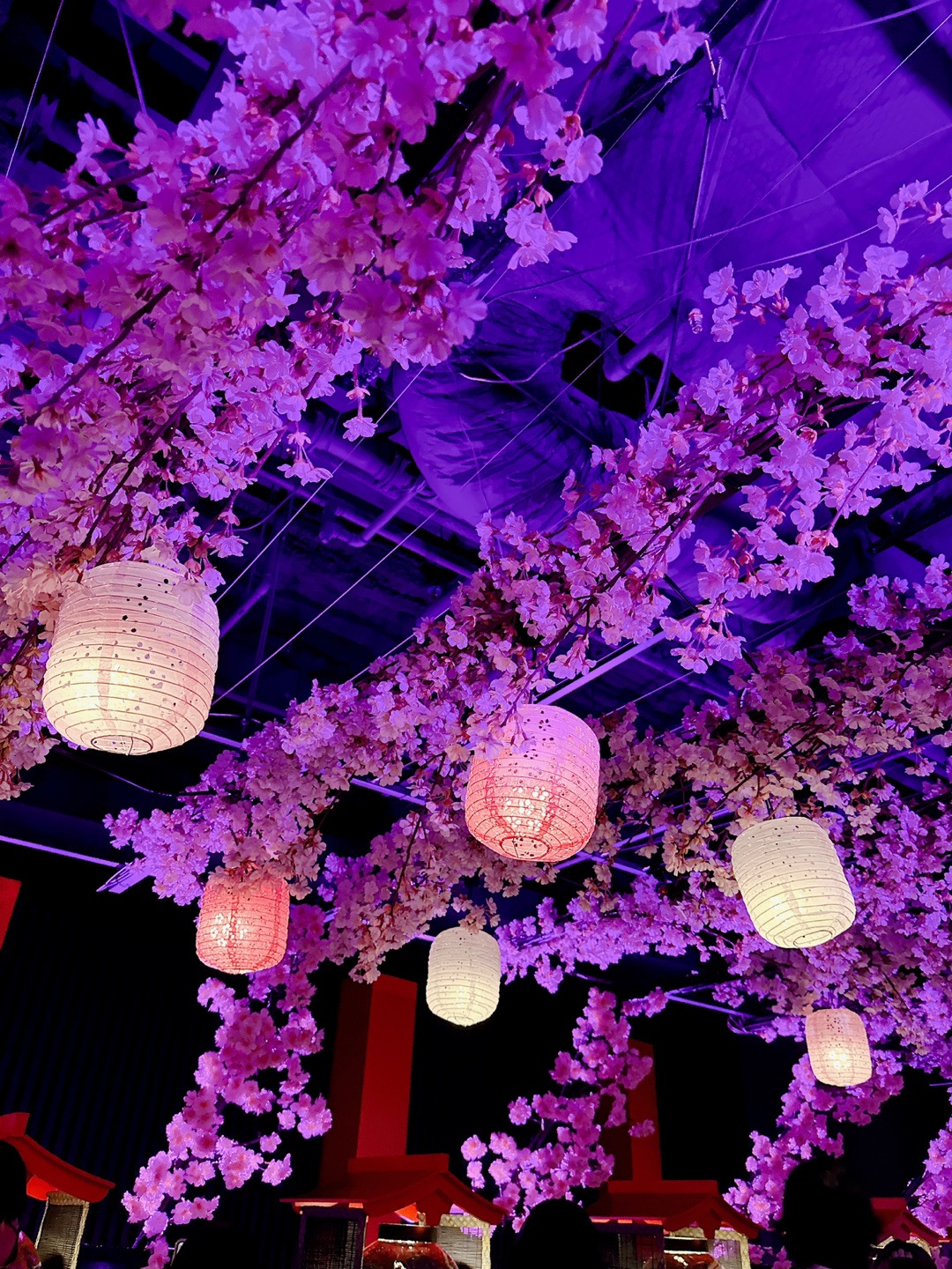 벚꽃과 잉어를 연상하게 만드는 부분들이 시선을 사로잡고 몽환적인 분위기로 자리를 머물게 합니다.
